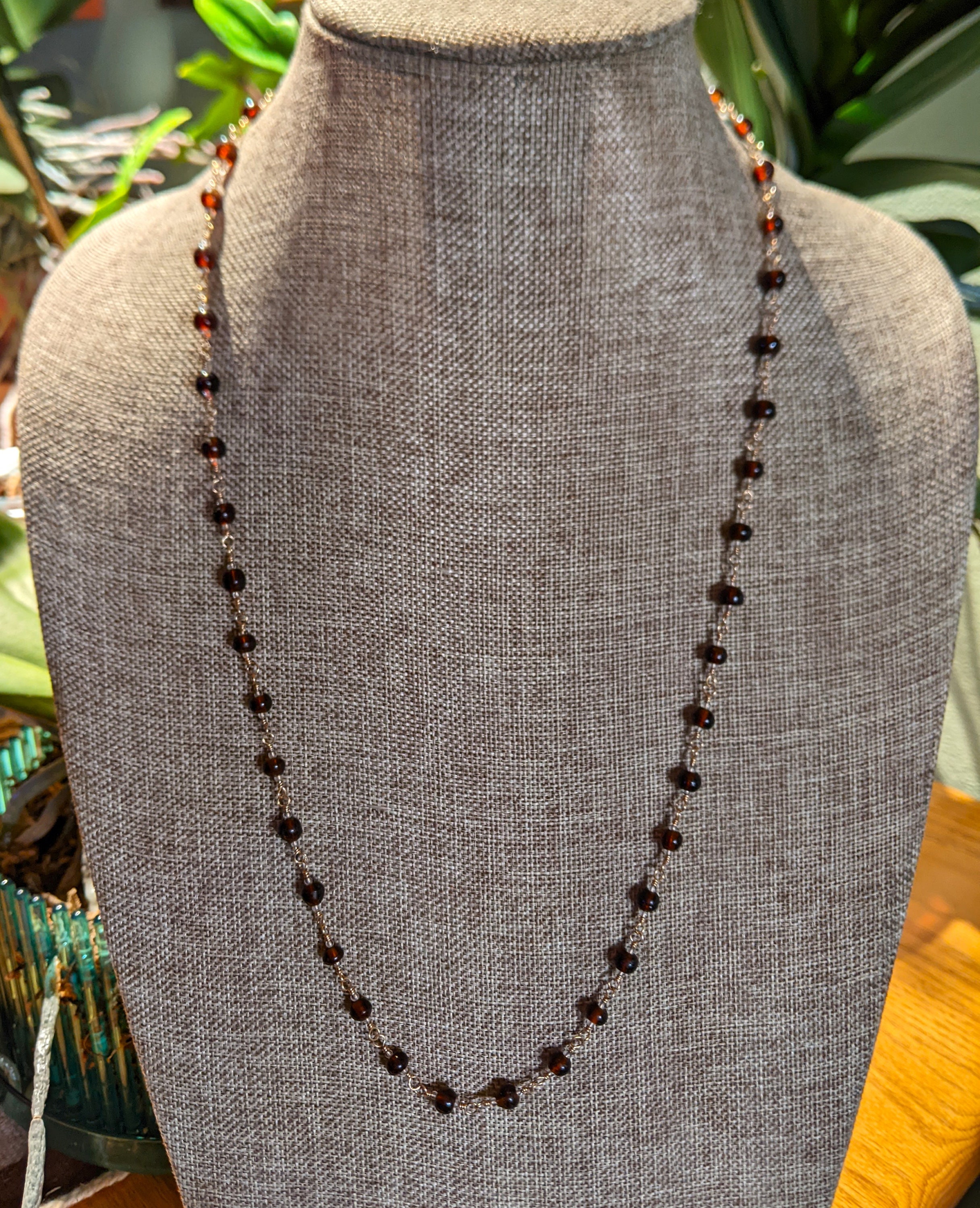 The padre beads in this necklace are rare because of their small size. Strung on gold filled wire.