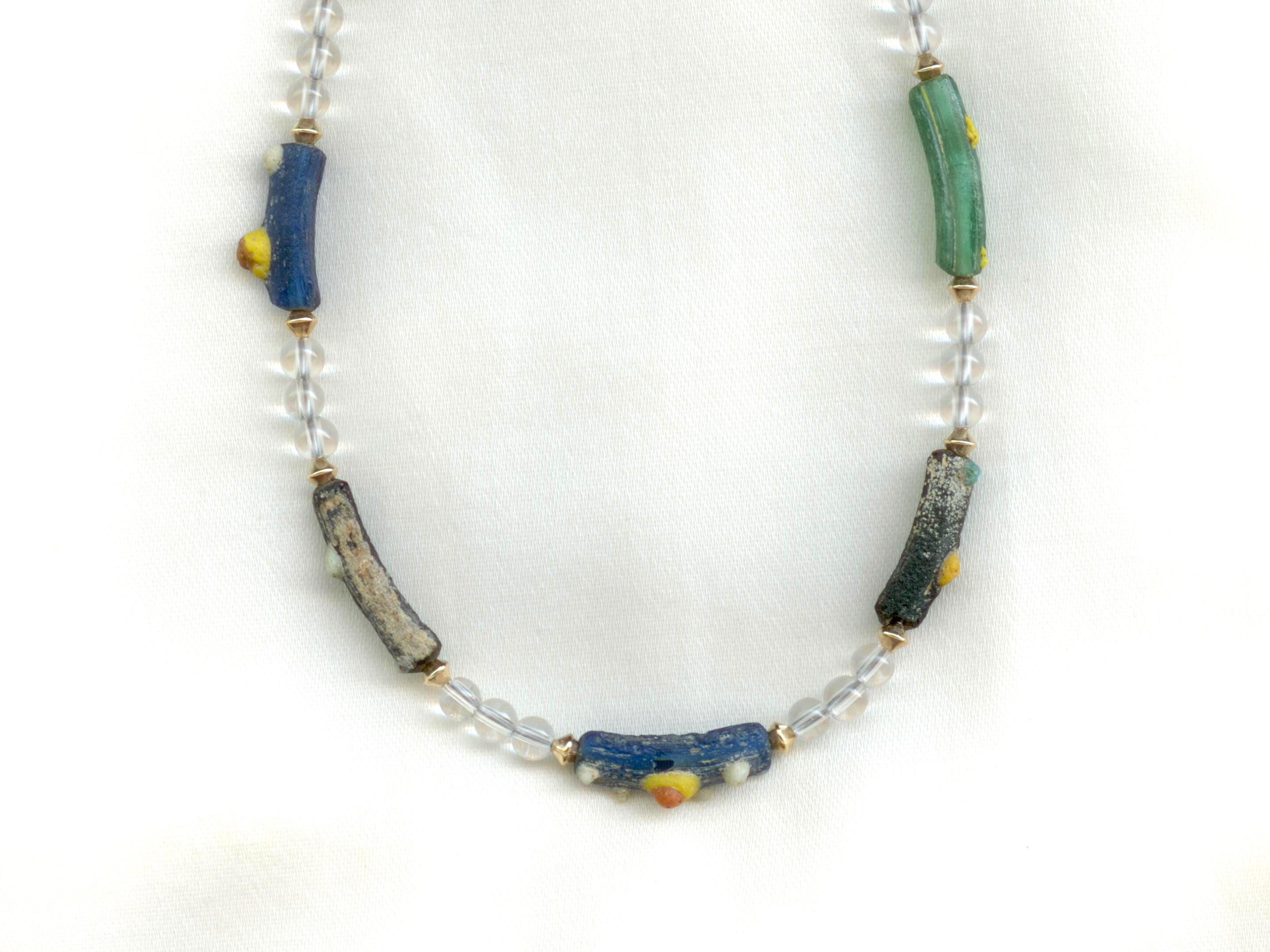 Fragments of Roman era decorated glass bracelet that have been made into beads. The glass dates