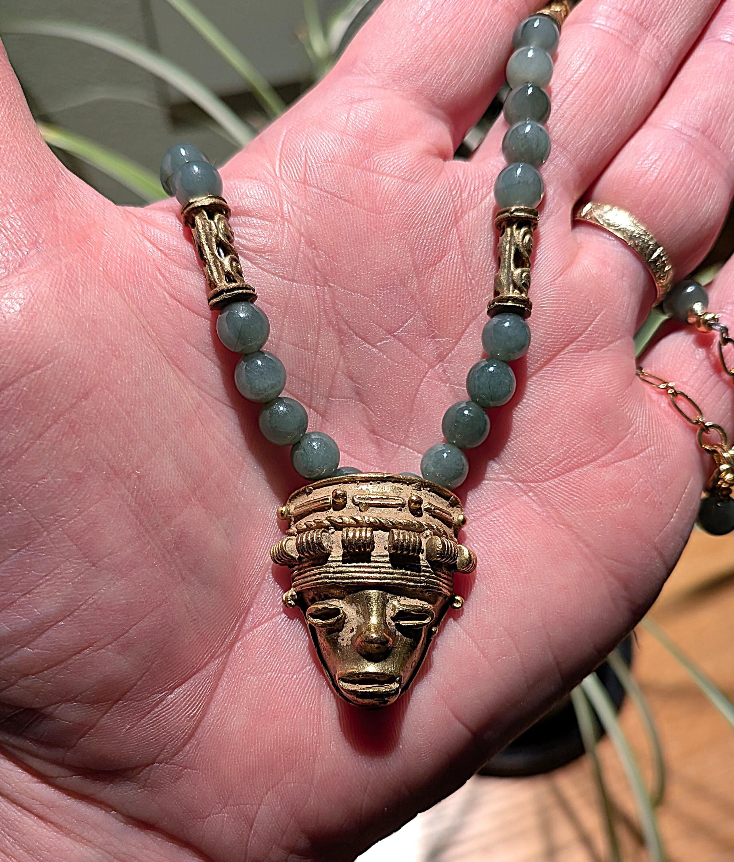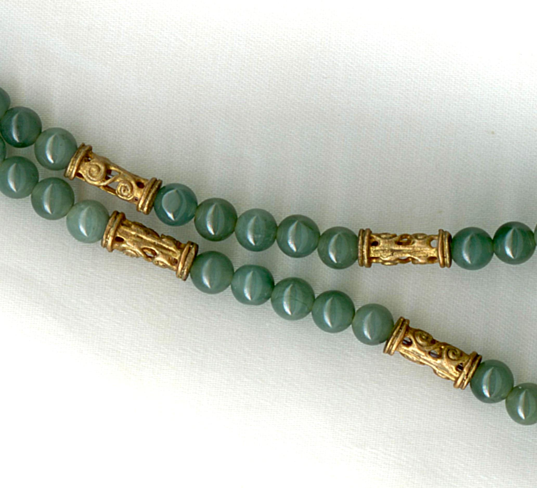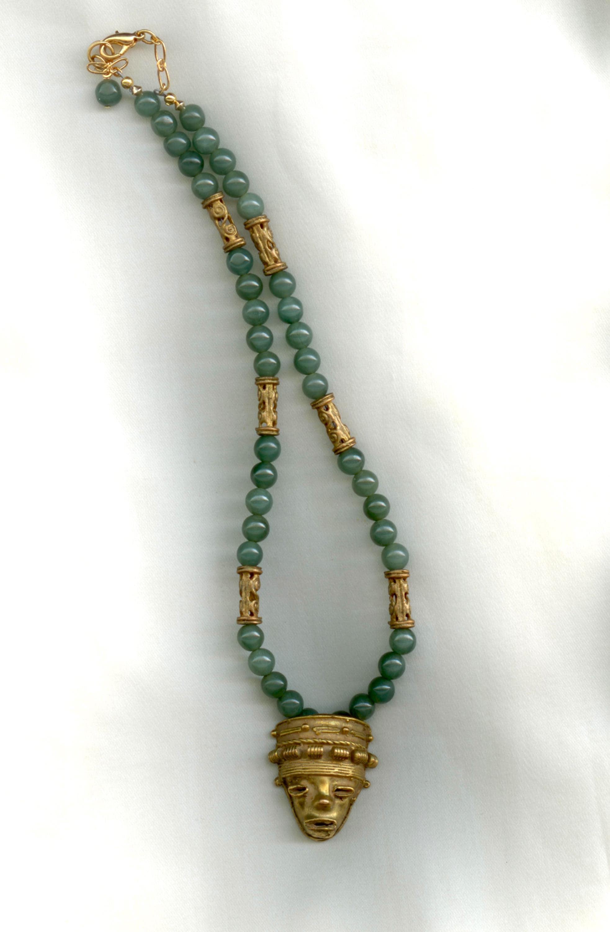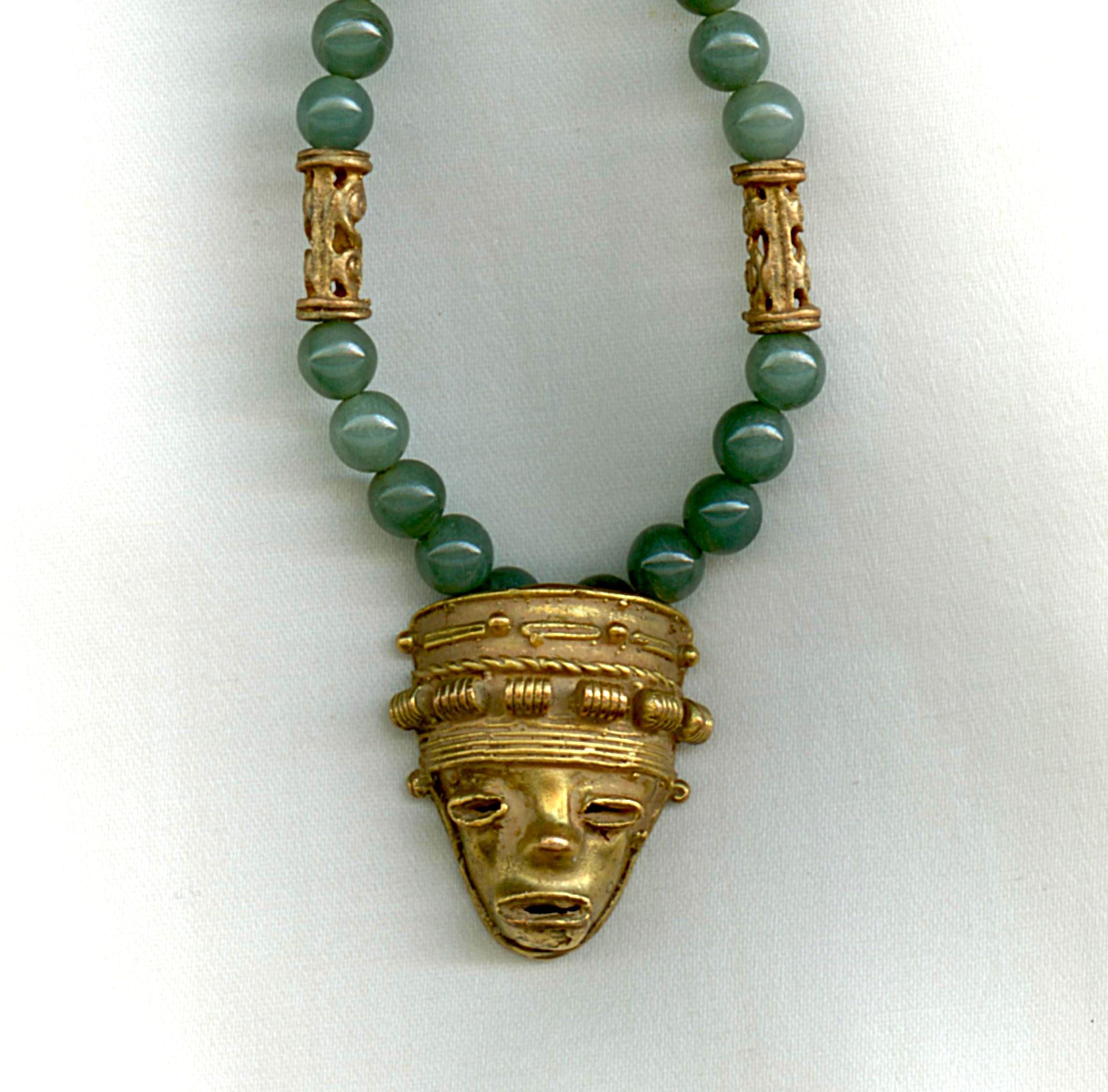 Strung with modern Guatemalan jade beads. Length: 17"