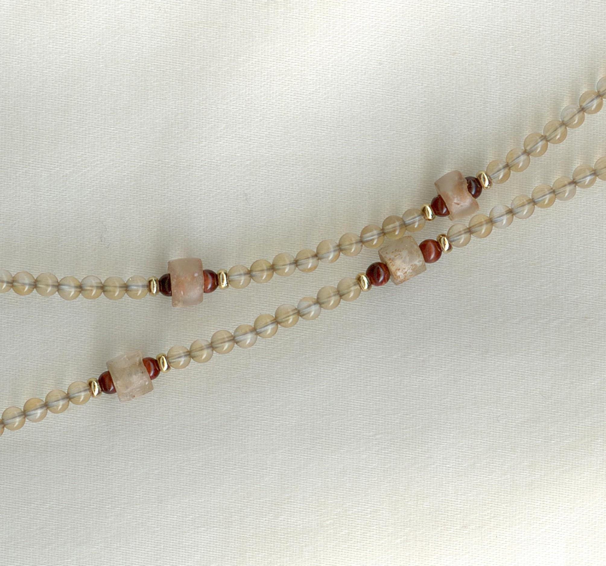 Quartz beads found in Mali with a likely date range from Neolithic times to 1,000 AD. They are beautiful and increasingly rare. They have the characteristic cone shaped holes resulting from the hand drilling methods used since Neolithic times in northern Africa.