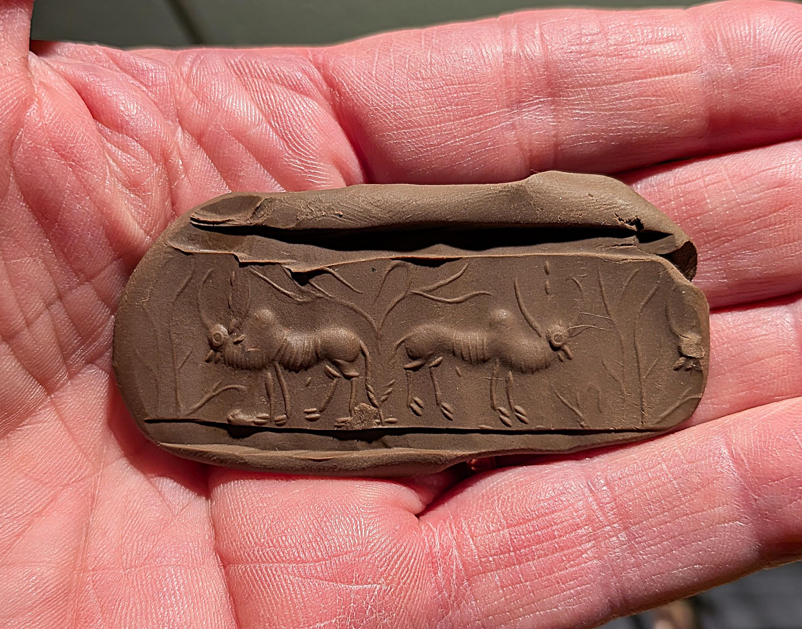 Cylinder seals have been in use from at least 3,200 BC. They were used to identify ownership in much the same way that a signature does today. Rolling the seal on wet clay leaves the impression which conveys the identity of the seal's owner. So this seal was the personal property, and symbolic identity, of an individual person who lived a very long time ago. It's amazing that you can hold it in your hand in the present day.