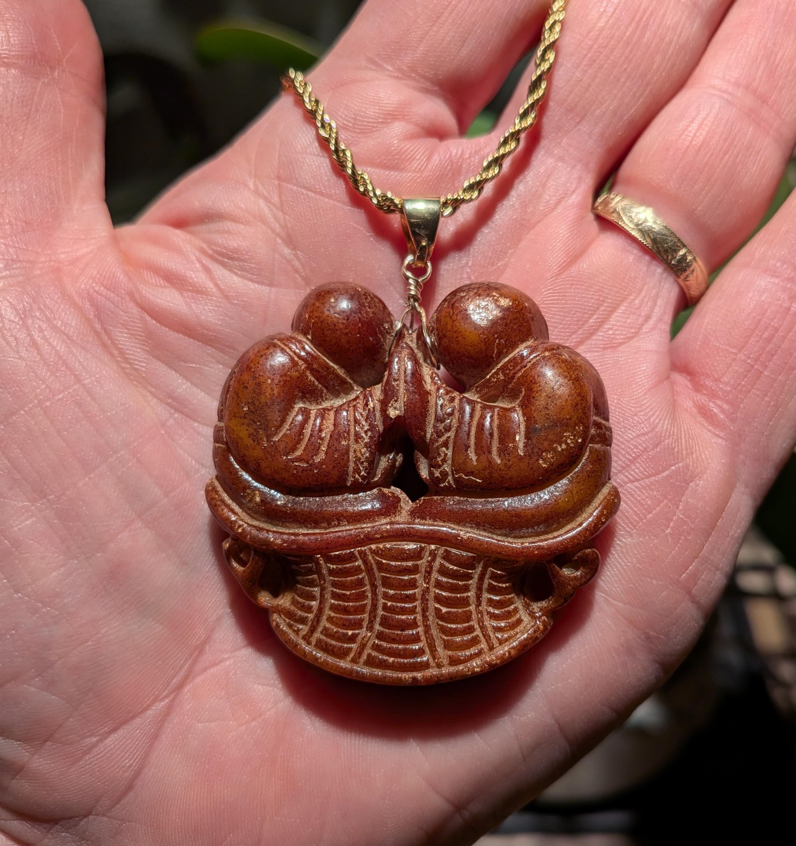 Unbearably charming ancient Chinese jade amulet. Late Ming to early Qing dynasty (1,600 - 1,800 AD). Exquisite workmanship.